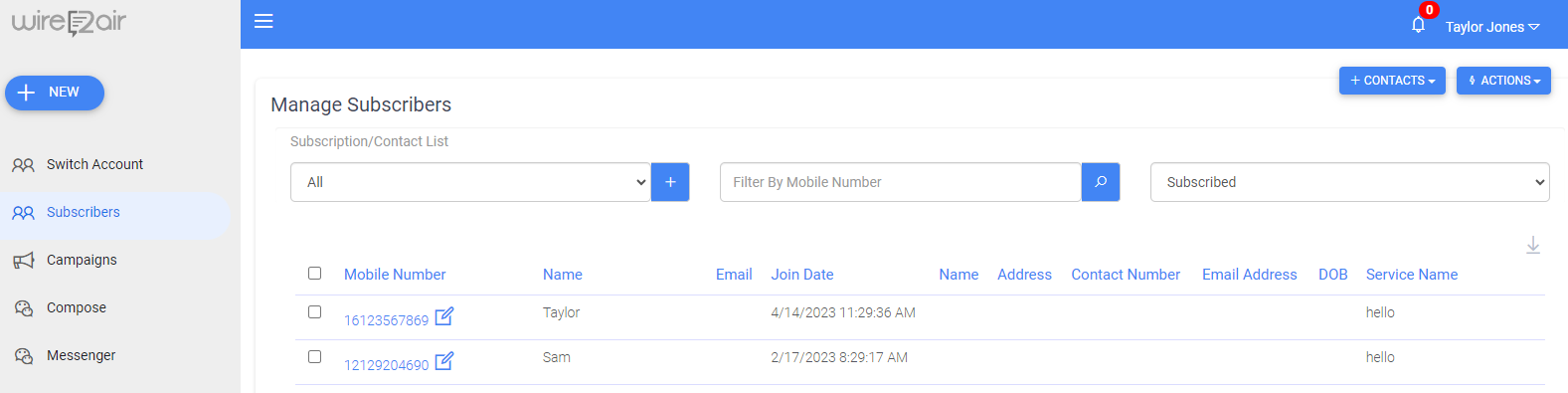 - Click on Subscribers on the navigation panel